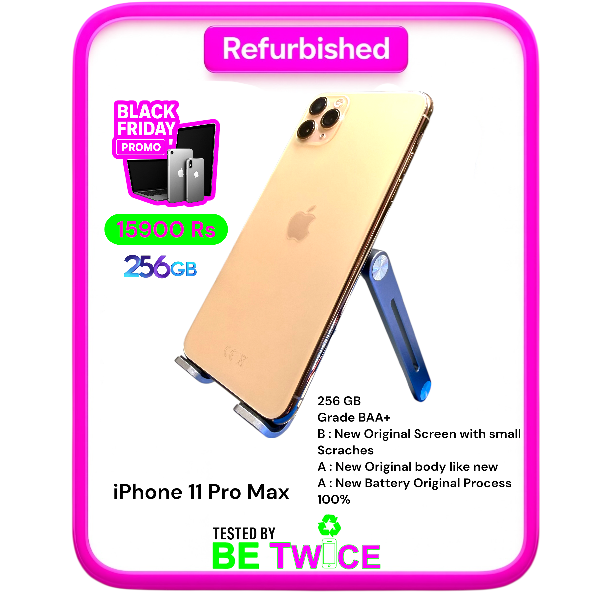 iPhone 11 PRO MAX – 256 GB – Gold – GRADE BAA – NEW BATTERY ORIGINAL PROCESS